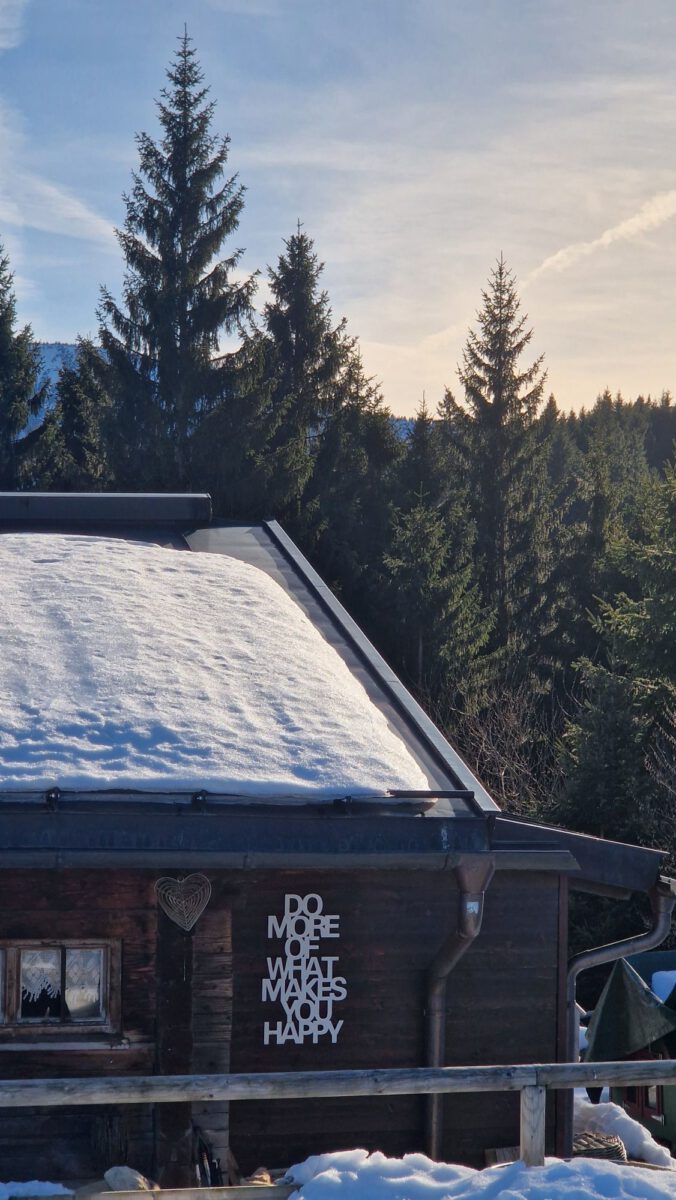Der Wanderweg beginnt nah an der Bushaltestelle, rund 100m nördlich an der Hauptstraße beim Wanderparkplatz geht es links hinein. Am Steinebach entlang kommt man nach wenigen Minuten durch den Hochseilgarten und danach zu einer Weggabelung. Je nach Schneelage bzw. Vereisung kannst du entweder rechter Hand den bald durch den Wald führenden Wiesenweg gehen (steiler aber kürzer) oder linker Hand die Forststraße, die auch als Rodelstrecke genutzt wird. Im Zweifel vorab auf der Hütte fragen, was besser begehbar ist.