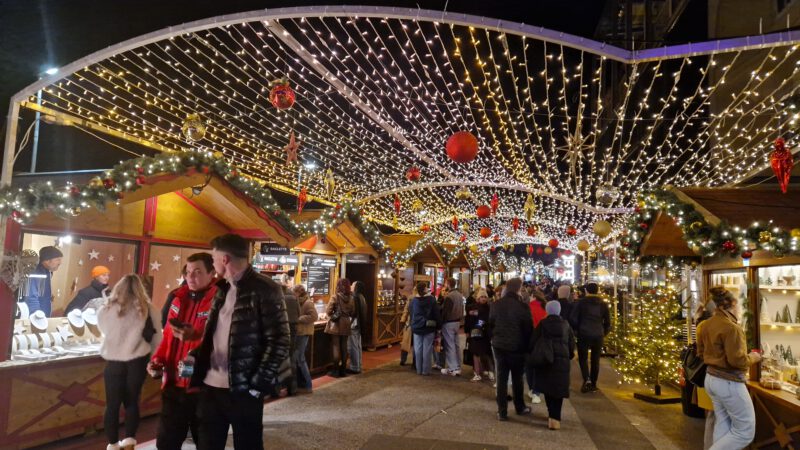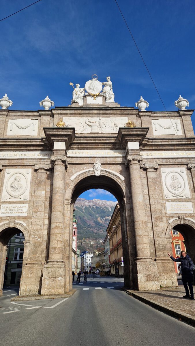 In Innsbruck kann man gleich an der Haltestelle Marktplatz aussteigen und steht schon am Eingang vom Weihnachtsmarkt an den Markthallen. Ein weiterer schließt sich auf der anderen Straßenseite in der Altstadt an.