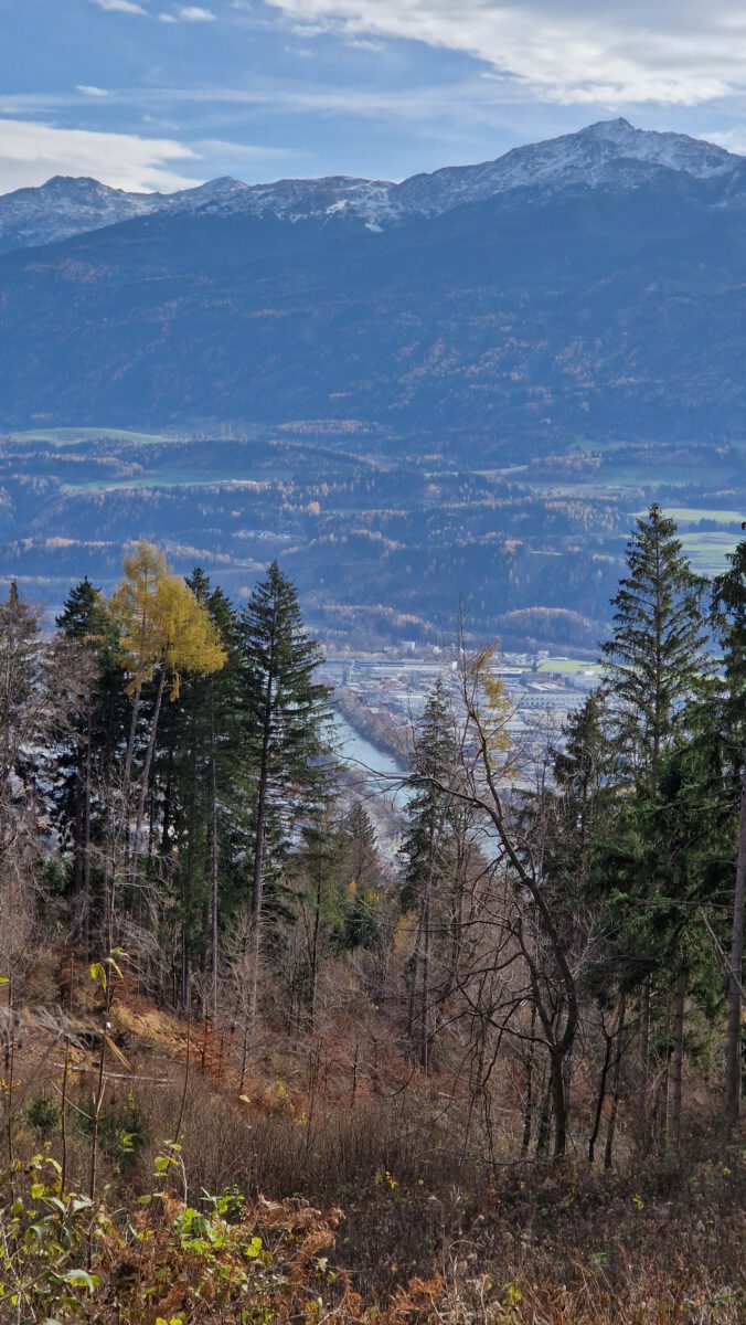 Während der ganzen Tour hat man ein herrliches Panorama auf die weit unten liegende Stadt Innsbruck und die gegenüber liegende Bergwelt der Tuxer und Stubaier Alpen.