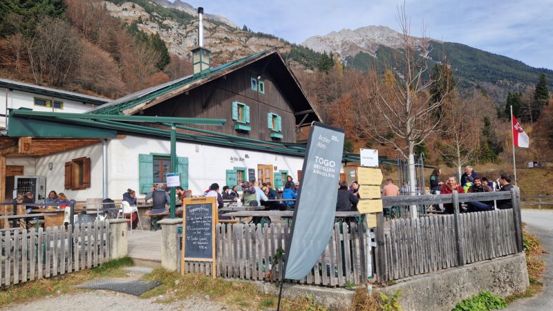 Von da führt der Arzler Steig direkt zur Arzler Alm, wo man auch schön einkehren kann. Mein Vorschlag führt aber über den Lackensteig weiter bis zur Rumer Alm. Insgesamt 400 Höhenmeter, knapp 4km Weglänge, also gerundet anderthalb Stunden hin und etwas weniger zurück.