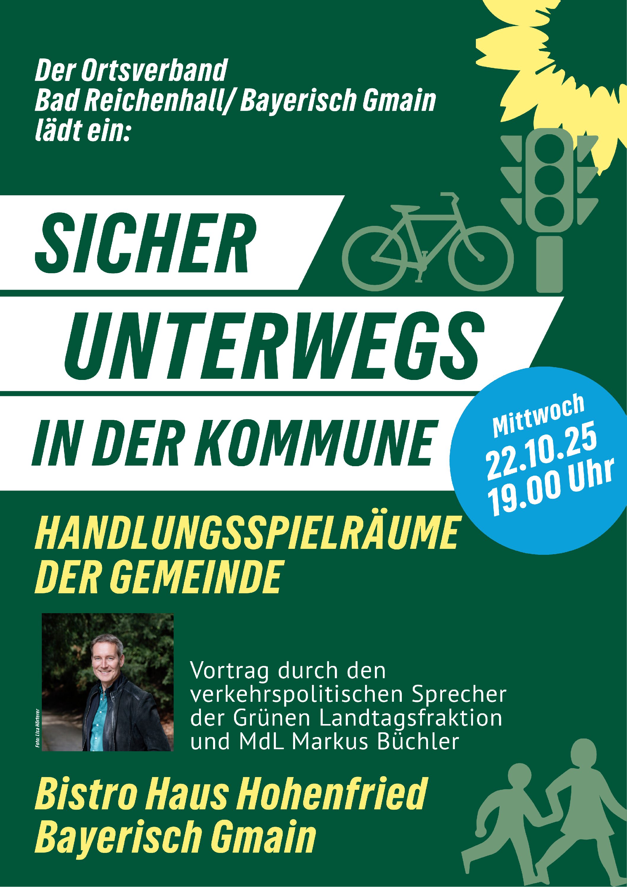 Die Grünen in Bad Reichenhall/Bayerisch Gmain laden zur Diskussion mit Dr. Markus Büchler, MdL, Sprecher für Mobilität der Landtags-Grünen ein. Wir können wir mit der neuen StVO mehr verkehrsberuhigende Maßnahmen einführen?